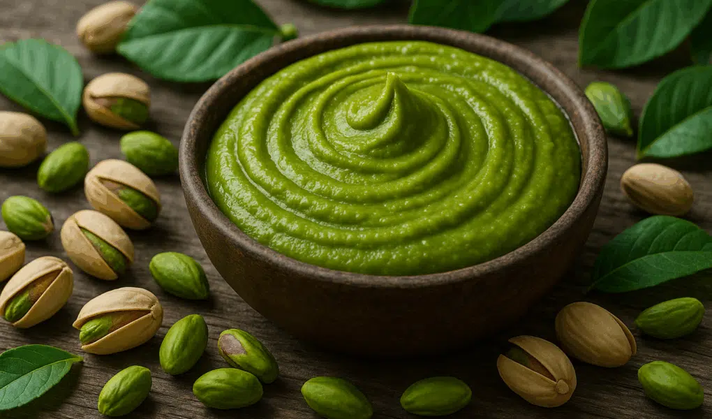 - Alternative végétale : Éliminez le sucre et ne gardez que pistaches et huile ; résultat : une purée pure, épaisse, idéale pour les régimes spécifiques ou les recettes peu sucrées.